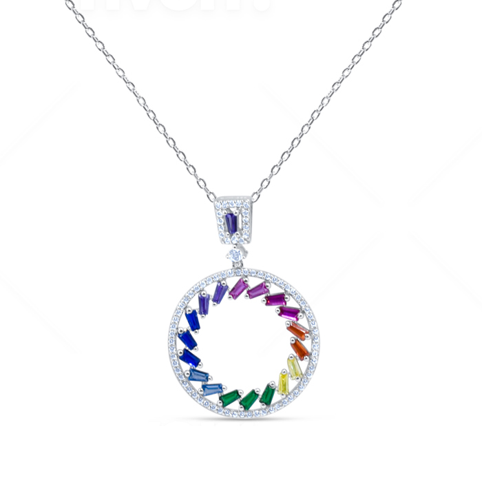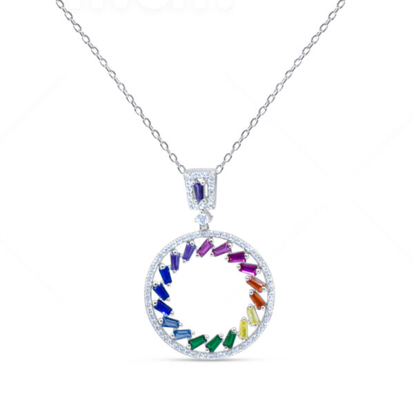 Silver Circle Shape Pendent Jewellery With White Zi-conia & Semi-precious Stones