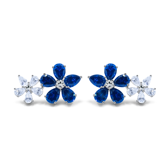 Silver Flower Earring Jewellery Set With Zirconia & Semi-precious Stones