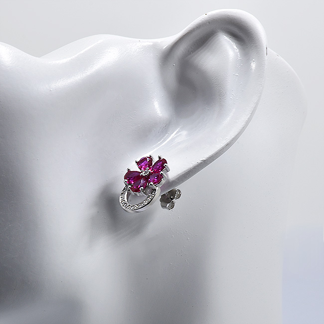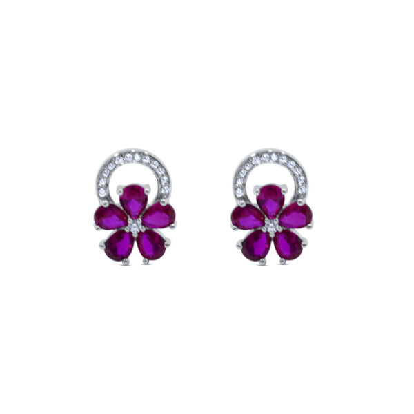 Silver Flower Earring Jewellery Set With Zirconia & Semi-precious Stones